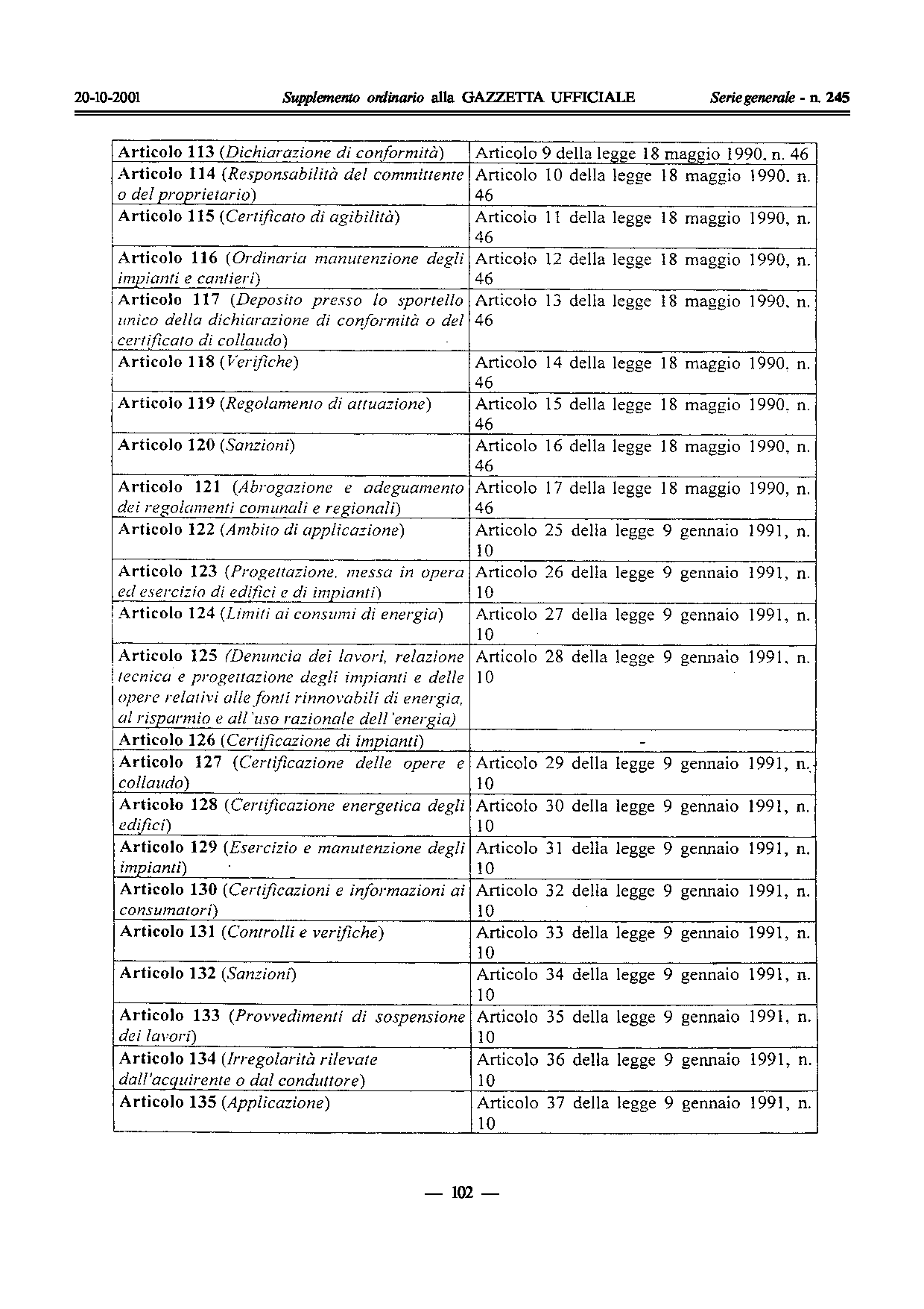 Art. 129 (L) – Esercizio e manutenzione degli impianti